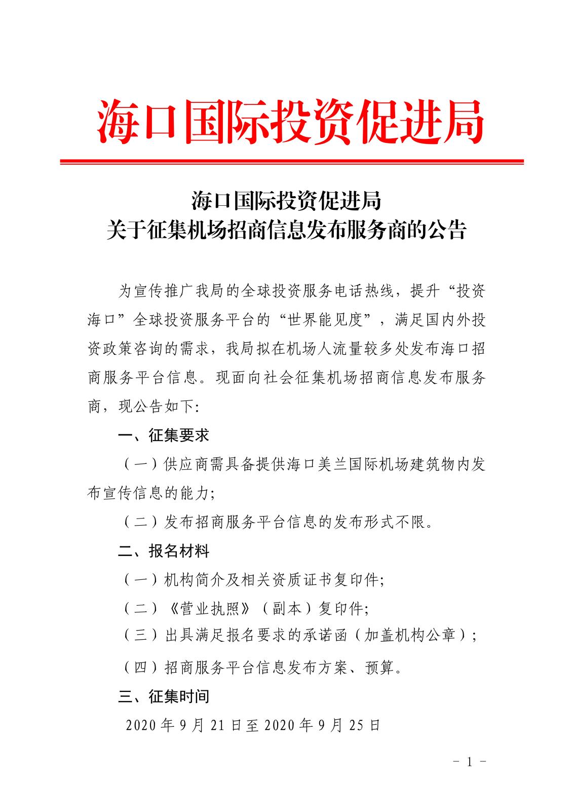 上一篇:海口國際投資促進局關于征集“投資海口”宣傳片制作服務商的公告