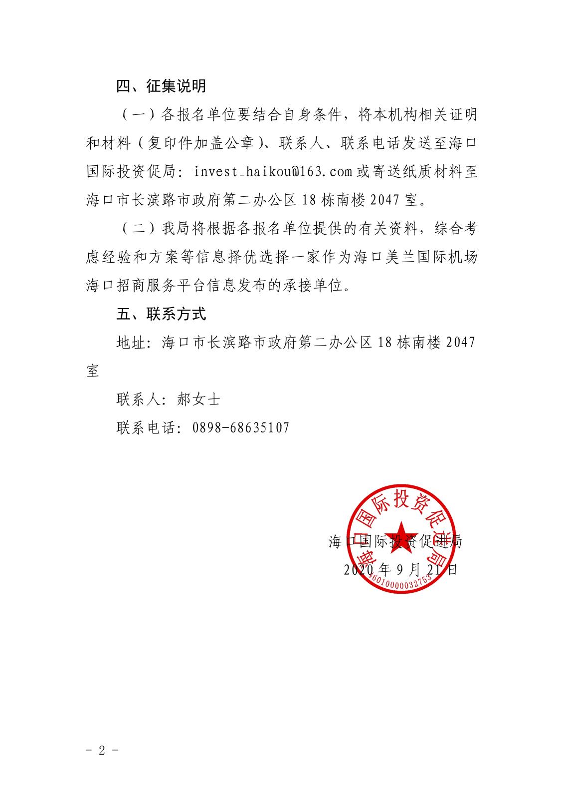 聯系電話:0898-68635107 電子郵箱:invest@haikou.gov.cn 通訊地址:海口市長濱路市政府第二辦公區18號樓南樓2043、2046、2047室