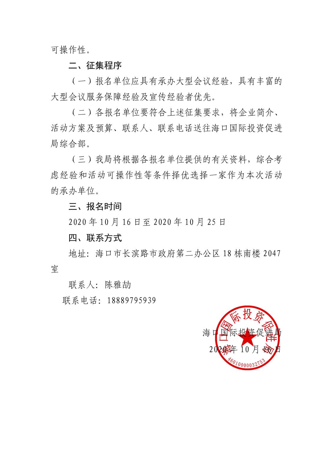 上一篇:海口國際投資促進局關于公開征集海口市重點項目集中簽約活動承辦單位的公告