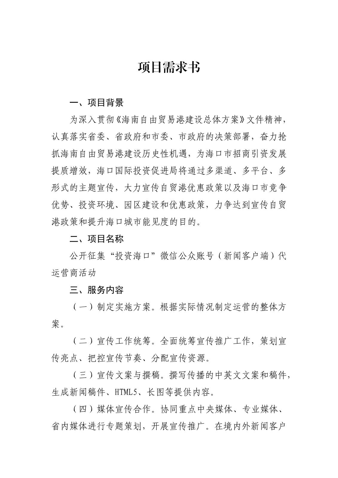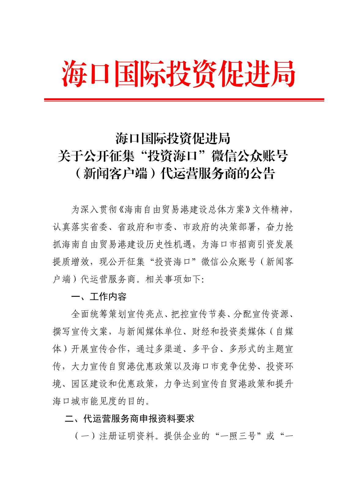上一篇:海口國際投資促進(jìn)局關(guān)于公開征集“投資海口”短視頻代運(yùn)營服務(wù)商的公告
