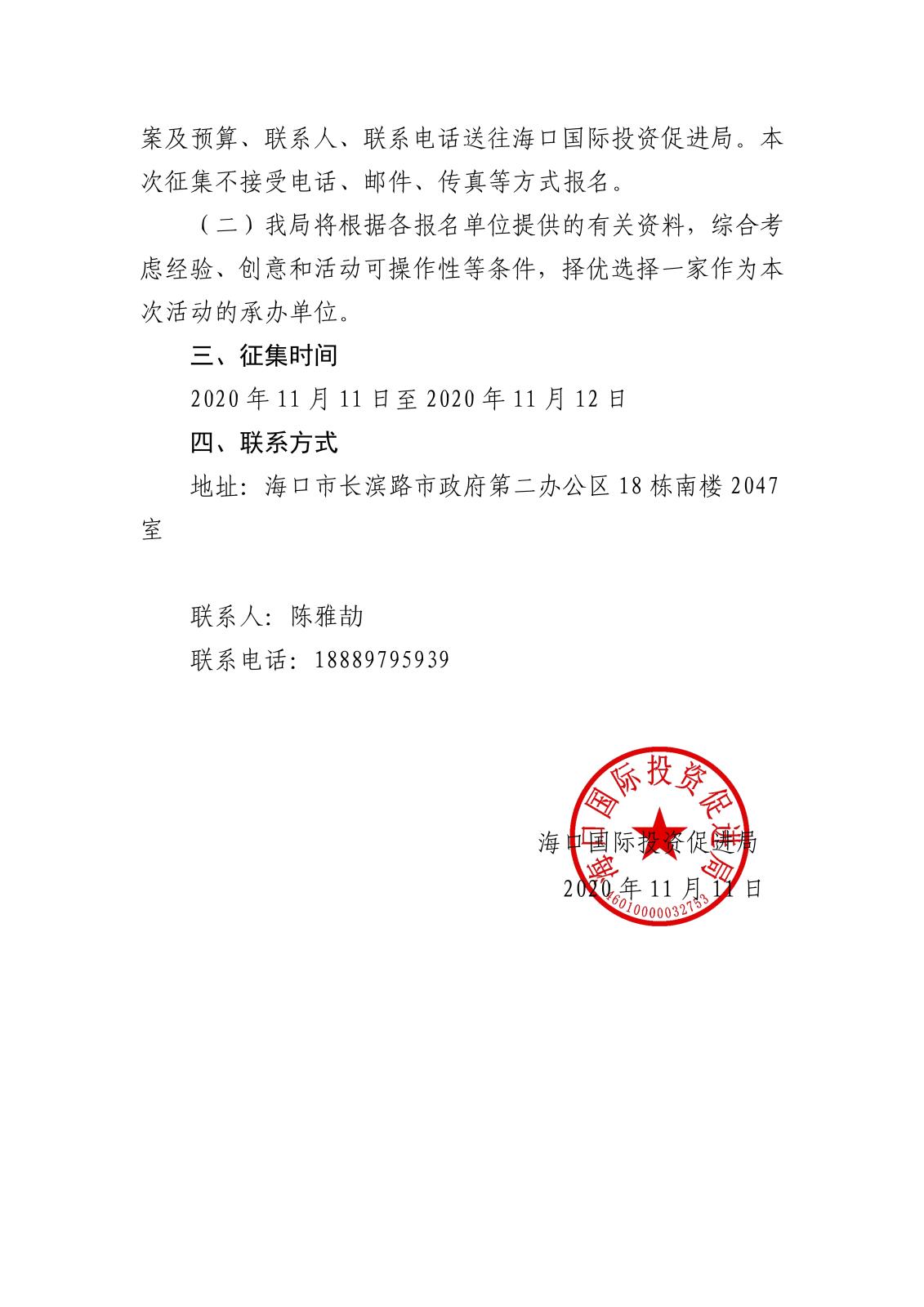 海口國際投資促進局關于公開征集??谡猩袒顒樱ㄖ貞c專場)會務服務項目承辦單位的公告