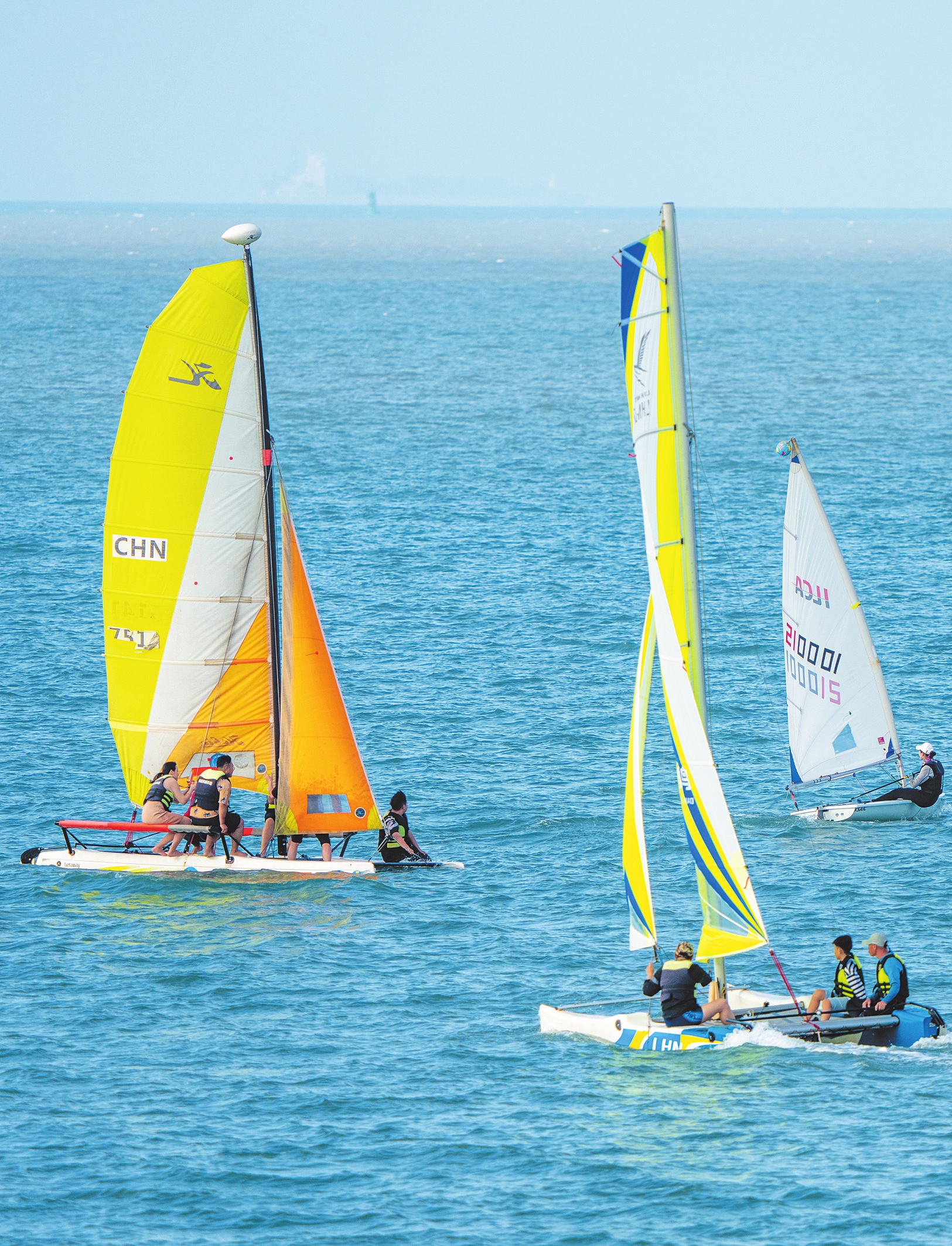 水上運動歷來受到島外游客的青睞。這是市民游客在海口西秀海灘體驗水上運動。記者 蘇弼坤 攝