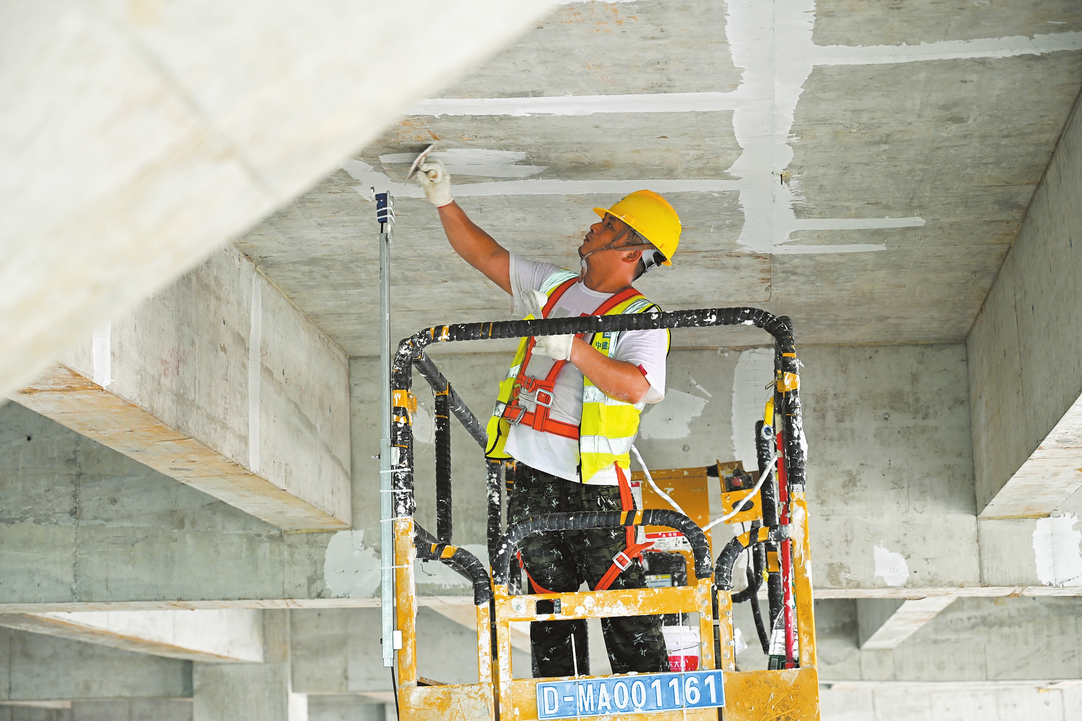 在海口綜保區(qū)的嘉誠(chéng)國(guó)際(海南)多功能數(shù)智物流中心項(xiàng)目現(xiàn)場(chǎng),工人在抹灰施工。海口日?qǐng)?bào)記者 石中華 攝