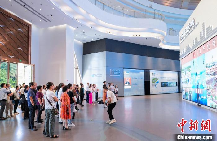 11月27日,“開(kāi)放·向未來(lái)——全國(guó)外宣媒體記者、海外傳播官、外籍網(wǎng)絡(luò)大V看海南”活動(dòng)在??趩?dòng)。圖為采訪團(tuán)成員探訪??诮瓥|新區(qū)。海南國(guó)際傳播中心供圖