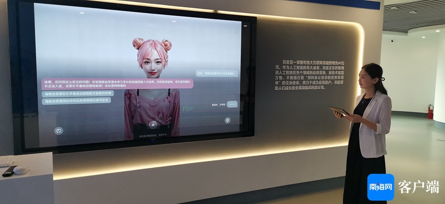 5月21日上午,記者來到海口市秀英區招商局大廈百度智能云(海口)人工智能基礎數據產業基地。在辦公區,不少人工智能技術人員在積極進行研發、測試等工作。在該司的成果展示區,記者還看到工作人員向大家展示當下比較熱門的“文心一言”APP的使用。當用戶向它語音輸入希望了解海南自貿港相關政策時,它很快就用大數據搜羅出不少具體的政策內容進行反饋。