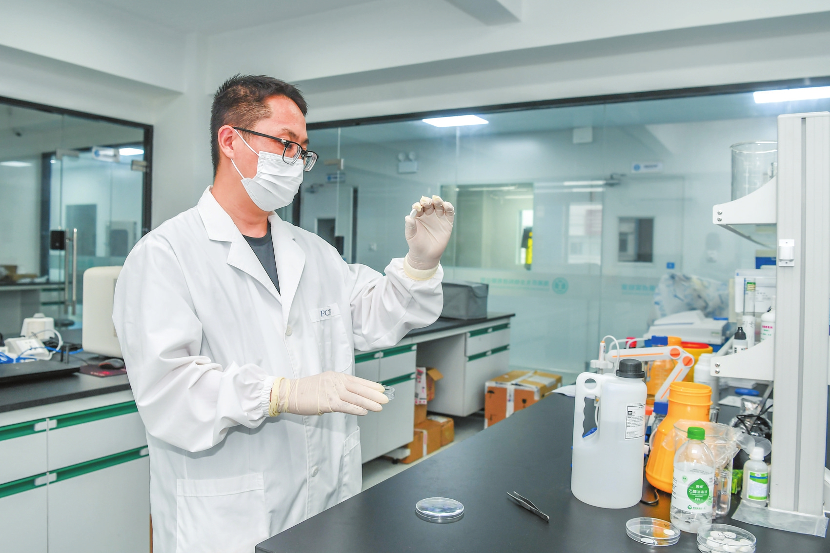 7月8日,在海口藥谷工業(yè)園海南蘇生生物科技有限公司,實(shí)驗(yàn)人員進(jìn)行軟組織修復(fù)實(shí)驗(yàn)。 海口日?qǐng)?bào)記者 孫士杰 攝