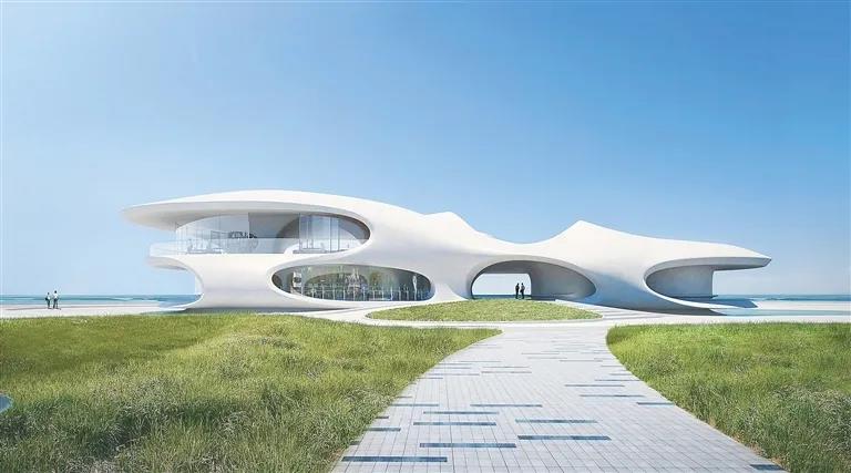 位于海口灣的云洞圖書館效果圖。圖/MAD建筑事務所